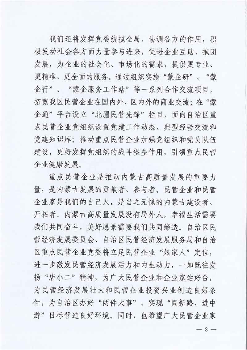 致自治區重點民營企業的一封信